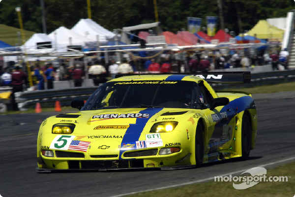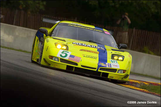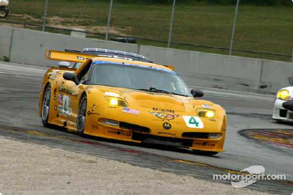 Above – 2002-07-07 – Road America – Although C5R-006 is running second here, the #4 team went on to win their first race of 2002 in this traditional 500 mile event.