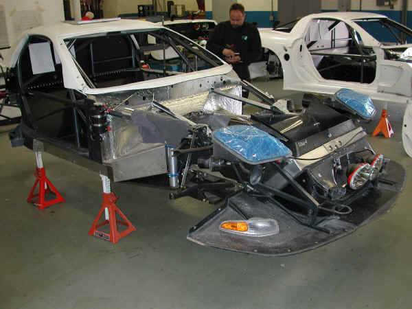 Above – Pratt & Miller Shop – 2001-09-14 – This is C5R-006 (foreground) and C5R-007 under construction. They were still using actual production turn signal units, rather than the decals they use today.