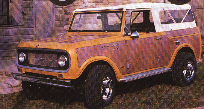 Glad you enjoyed the picture. I worked at IH when the Python was built. The Course Marshall at that Mid-Ohio Trans-Am race in ’69 was a Scout engineer at IH (note the IH Engineering sticker on the vent window). He was able to borrow the Scout for Course Marshall duties.Will email more info.